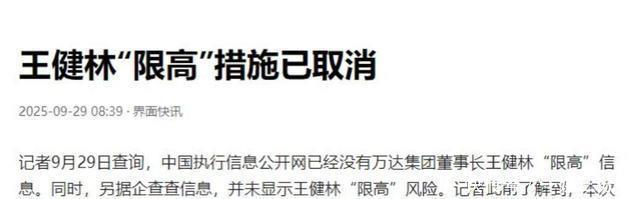 这真的很难不让人去联想,是不是“子债父偿”了。毕竟万达这两年一直都在赔钱,这么几百亿的赔出去谁能扛得住。 更让人摸不着头脑的是,就在老王限高的消息刚曝出来没多久,就已经被取消了。